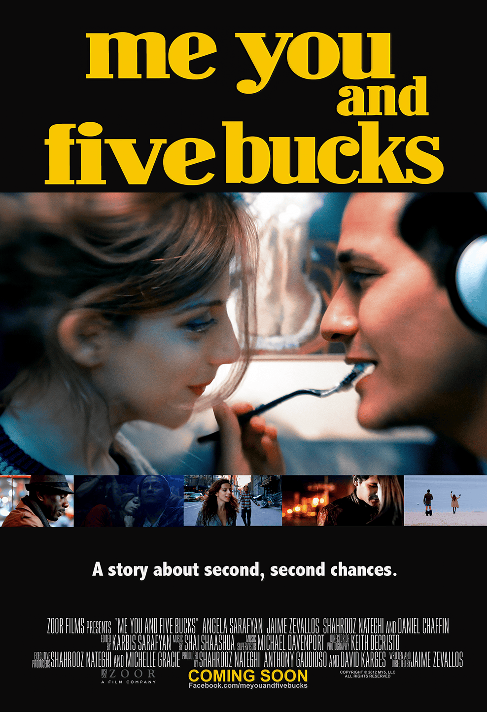 A collection of film stills(shotdeck) from the feature film: 'Me, You and Five Bucks'(2015) - finally gets the color timing it always deserved, but never got. Cinematographer Keith DeCristo shows us what could have been.